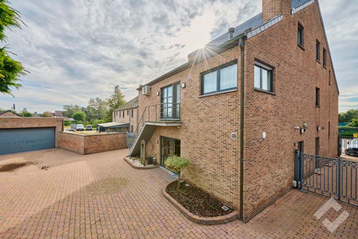 Vooraan het gebouw zijn er enkele parkeerplaatsen voorzien en het achterste gedeelte van het perceel is volledig omheind met ook nog een ruime garage.