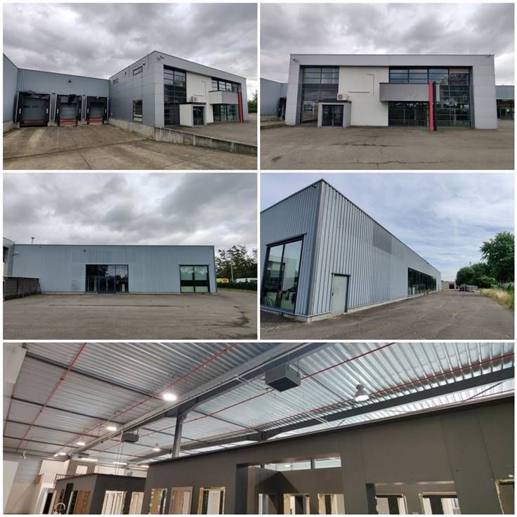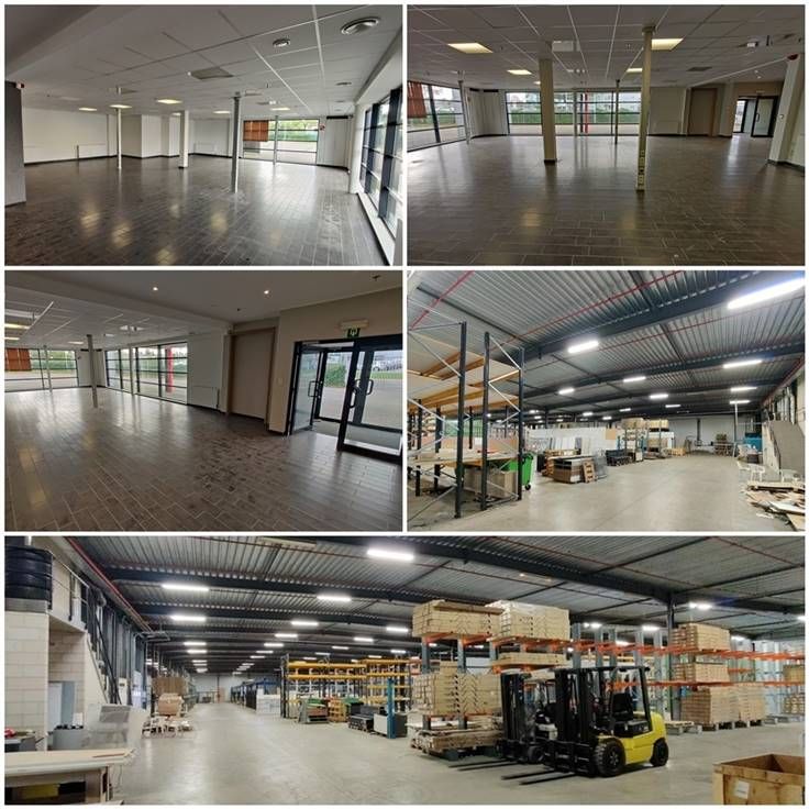 Industrieel complex, geschikt voor diverse doeleinden. Magazijn: 5.915 m2, showroom: 1.064 m, kantoren + conciërgewoning: 424 m2 te koop/te huur gelegen de Duifhuisstraat 4350, Sint-Truiden (zichtbaar van N80) - Industriezone Schurhovenveld. Share-deal of asset-deal. Diverse huurmogelijkheden op maat.