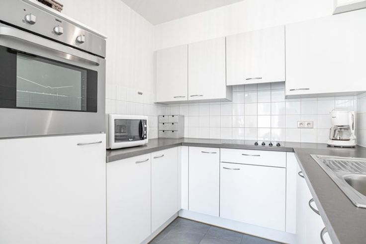 Verder biedt dit appartement een apart toilet, twee slaapkamers, een praktische berging en een badkamer voorzien van ligbad, toilet en dubbele lavabo.