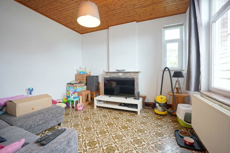 Idéalement située dans un quartier calme, sur les hauteurs d'Amay, Trevi Rasquain vous propose cette jolie maison à rénover. La maison se dispose comme suit : Au RDC, salon, salle à manger, cuisine, salle de douche, wc séparé. Au 1er étage, deux belles chambres (15m² et 16m²). Caves au sous-sol. Agréable jardin avec grande terrasse ! 2 emplacements de parking. Aspects techniques : chauffage central au mazout, châssis en double vitrage bois et pvc, boiler électrique, égouts, compteur bi-horaire. PEB "G" (763 kWh/m².an - certificat n°20230619034862). BUDGET TRAVAUX A PREVOIR ! (Toiture, électricité, isolation...) RC : 275€. A visiter sans tarder !! Prix de vente : FAIRE OFFRE A PARTIR DE 175.000€, sous réserve d'acceptation des propriétaires. Informations données à titre indicatif et non contractuelles. Cette annonce ne constitue pas une offre. Plus d'informations : 085.25.39.03 - info@trevirasquain.be - www.trevirasquain.be