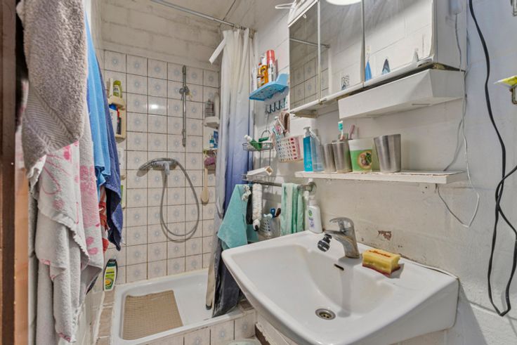 Het gelijkvloers bestaat uit een winkelgedeelte, een keuken, een berging, een koer en een badkamer.