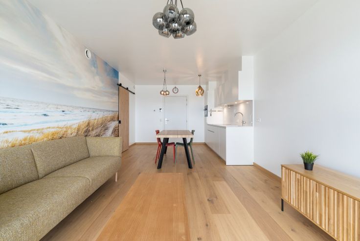Dit prachtig afgewerkte 1-slaapkamerappartement van 55 m² combineert een stijlvol interieur met adembenemende uitzichten, zowel over de uitgestrekte Noordzee als het groene hinterland. De lichtrijke woonkamer is voorzien van brede planken in volle parket, wat niet alleen warmte en sfeer geeft, maar ook een luxe uitstraling. De parketvloer loopt naadloos door richting de slaapkamer, wat het geheel een elegant en ruimtelijk gevoel geeft.