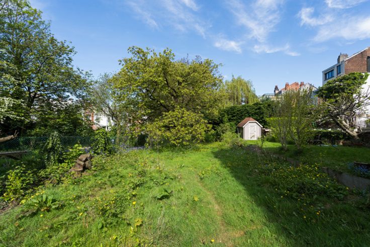 UCCLE - Vlakbij Wolvendael Park - Bouwgrond van 721m² met bouwvergunning voor een tweegezinswoning met 4 slaapkamers, garage en tuin. Volgens de plannen zal het huis als volgt samengesteld zijn: Op het gelijkvloers: een inkomhal met gastentoilet, een garage van ± 19m², een woonkamer van ± 70m² met een open keuken, een terras van ± 19m² dat toegang geeft tot de tuin (Onder het terras: een berging). Eerste verdieping: een nachthal, een ouderlijke suite met een slaapkamer van 14m², een dressing, een douchekamer van 9m², een wasruimte, een bureau van 10m², een atelier van 13,5m² en een terras van 11,5m². Tweede verdieping: 3 slaapkamers van 14.5m², 13.5m² en 13.5m², een douchekamer van 3.5m² en een terras van 9m². Dossier beschikbaar op aanvraag. Onmiddellijk beschikbaar.