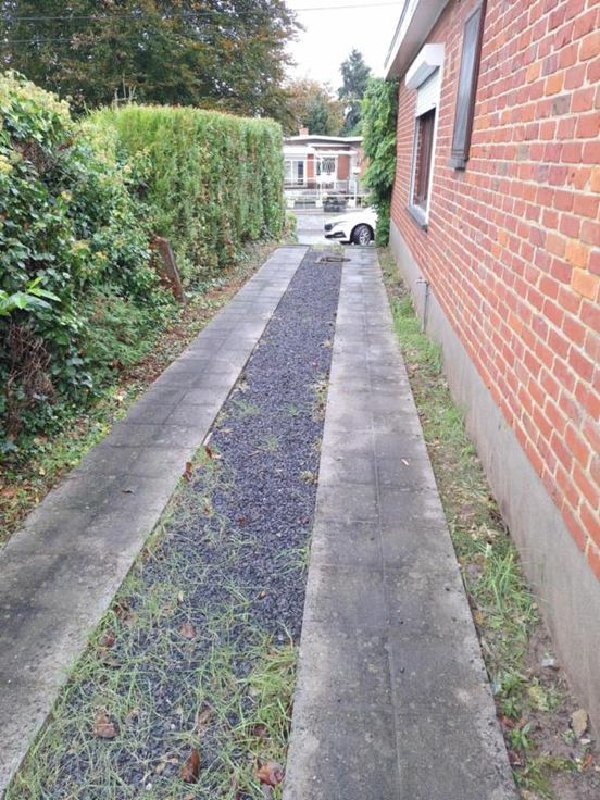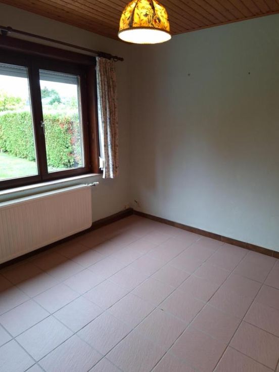 Dans un quartier calme et résidentiel, à proximité directe de la chaussée de Bruxelles (entre Soignies et Mons), bungalow 4 façades bâti sur un terrain de 6a50 ca se composant comme suit : Au sous-sol : Garage une voiture de 18m² avec double porte manuelle ; chaufferie avec chaudière (de marque CHAPEE) avec production d’eau chaude via boiler ; petite cave. Au rez-de-chaussée : petit hall d’entrée avec placard de rangement ; salon à l’avant de 20,5m² avec insert bois (fonctionnel) ; cuisine de 7,5m² semi-équipée avec taque vitrocéramique, hotte, évier et meubles ; séjour de 24m² à l’arrière avec porte donnant accès vers l’extérieur – présence d’un système d’air conditionné ; salle de bains de 5m² carrelée avec douche, cabine douche, évier, W hambre de 10m² donnant sur l’arrière avec placard de rangement intégré. Extérieur : Terrasse en dalles avec tente solaire manuelle ; passage latéral pouvant servir de parking ; grand jardin idéalement orienté ; deux abris de jardin. Commodités : toiture : plate avec revêtement style « Derbigum » remplacée et isolée (+/- 10 ans) ; chauffage central au mazout – cuve à mazout enterrée d’une contenance de 2400 litres ; revêtement de sol : carrelage partout ; Insert bois ; compteur électrique mono-horaire – installation d’époque ; raccordement aux égouts publics ; châssis en bois double vitrage datant de 1992 ; volets manuels et électrique à un endroit.