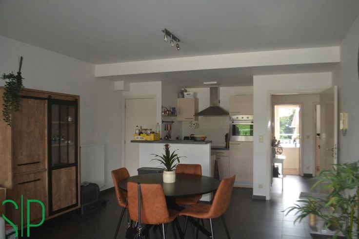 Smaakvol ingericht recent appartement met garage op 1e verdieping bestaande uit: inkomhall, apart toilet, grote living/eetkamer (35m², tegels) met schuifraam naar groot terras (15m²), ingerichte keuken (spoelbak, dampkap, vitrokeramische kookplaat, oven, afwasmachine, koelkast met vriesvak, kasten, tegels), badkamer met ligbad en dubbele lavabo (tegels), slaapkamer 1 met balkon (15m²), slaapkamer 2 (8m²), ( berging/wasplaats (tegels). CV op aardgas, pvc ramen met dubbele beglazing. EPC: 131 kWh/m² en UC : 3393375 Voor bijkomende inlichtingen kan u ons contacteren op het nummer 014/51.95.00