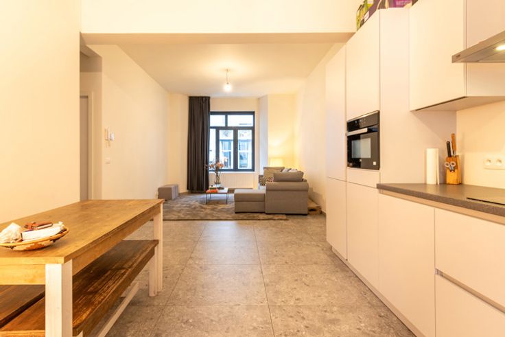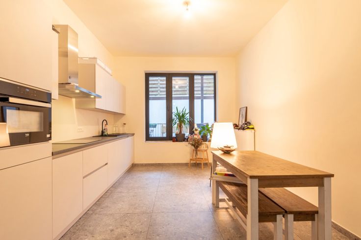 Dit stijlvolle appartement met energielabel A is gelegen in de populaire wijk 't Zuid, een van de meest gewilde buurten van Antwerpen. Het appartement heeft alles wat je nodig hebt voor een comfortabel en zorgeloos leven in de stad. Bij binnenkomst word je verwelkomd in een ruime en lichte leefruimte die direct aansluit op een moderne open keuken, ideaal voor gezellige avonden met vrienden en familie. De twee slaapkamers zijn ruim en bieden voldoende mogelijkheden voor een gezin, een thuiskantoor of een logeerkamer. Verder is er een apart toilet en een handige bergruimte voor extra opslag. Het hoogtepunt van dit appartement is het gezellige terras, perfect om tijdens de zonnige maanden te genieten van een drankje of een boek. De ligging is een van de grootste troeven. Op wandelafstand van de gedempte Zuiderdokken, vind je hier tal van trendy restaurants, gezellige cafés, en boetieks. Het openbaar vervoer is om de hoek, en met de fiets ben je zo in het centrum. Met de wagen heb je bovendien snelle toegang tot de belangrijkste autosnelwegen, waaronder de A12, E19 en de Ring.