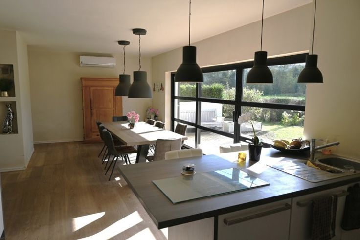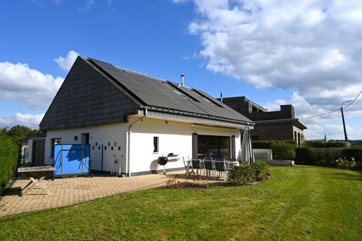 Deze instapklare gezinswoning met 4 slaapkamers ligt op een prachtige, landelijke locatie in het rustige Werchter, omgeven door groen. De woning werd 10 jaar geleden volledig gerenoveerd en beschikt over 32 zonnepanelen die jaarlijks circa 9500 kWh opwekken, wat zorgt voor een nulverbruik van elektriciteit. Bij binnenkomst leidt de hal naar de ruime leefruimte die voorzien is van airco en een directe connectie heeft tot zowel de voor- als achtertuin. De open keuken is volledig uitgerust en praktisch ingedeeld. Daarnaast is er op het gelijkvloers een badkamer met inloopdouche, dubbele lavabo en toilet. Een extra kamer kan dienst doen als bureau of praktijkruimte maar is ook ideaal voor wie alles gelijkvloers zoekt. De inpandige garage biedt extra opbergruimte. In de tuin vind je zowel vooraan als achteraan een gezellig terras om te ontspannen in de natuur. Op de eerste verdieping bevinden zich drie ruime slaapkamers en een nachthal. Achteraan de woning is er voldoende parkeergelegenheid voor meerdere wagens. Zie jij jezelf hier al wonen? Bel snel naar 0476 72 78 72 voor een afspraak!