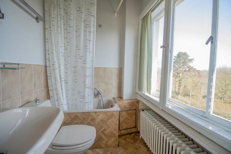 Sous-sol : +/- 100 m² : Caves entièrement carrelées (mur + sol), vaste buanderie, chaufferie (Buderus installée en 2002), production d’eau chaude de 300l, WC, pompe hydrophore avec système d'épuration d'eau de pluie