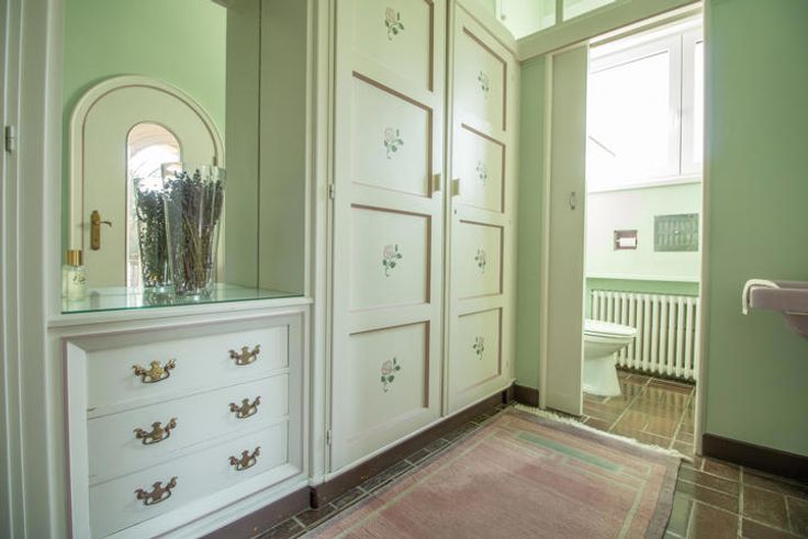 1er étage : +/- 225 m² : Vaste hall de nuit. 3 chambres avec chacune SDB & WC, dont une avec rotonde et terrasse donnant sur le jardin, et une autre avec terrasse couverte. Une grande pièce carrelée avec sanitaire pouvant servir de salle de jeux ou de sport.