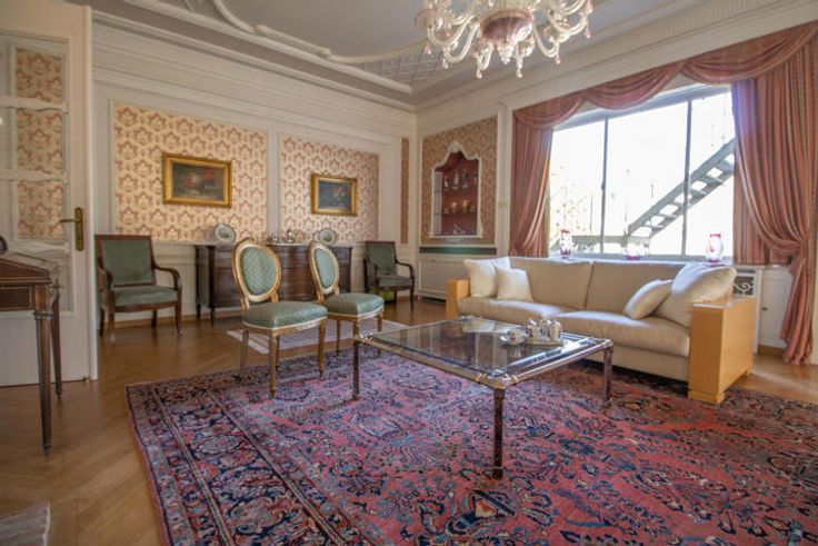 Rez-de-chaussée : +/- 225 m² : Perron, 2 halls d’entrée, vaste vestiaire avec WC et lavabo, séjour principal avec feu ouvert et rotonde, 2ème séjour avec terrasse, salon TV avec feu ouvert, ascenseur Schindler donnant accès au 1er étage, cuisine équipée (installée en 2011) avec office donnant sur le séjour.