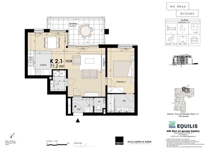 HOUSY vous propose cette NOUVELLE PHASE 2024 comprenant 25 appartements neufs, situés à Seneffe, dans un cadre unique, au bord de l’eau, logé entre l’ancien canal et le RAVeL. Cet immeuble "JK" complète les deux immeubles "EFG" et "HI" en cours de construction. Ces logements offrent à la fois une tranquillité toute champêtre et une accessibilité optimale. Proche des commerces, écoles, axes routiers et transports en commun. Immeubles de 3 étages. Chaque appartement aura sa terrasse privative, une cave (suppl. 5.000€ htva) et un parking souterrain (suppl. 20.000€ htva). De l'appartement 1 chambre au penthouse 4 chambres. Appartement à partir de 229.000 euros Htva. Renseignements : HOUSY SERVICES IMMOBILIERS : 067/70.01.70.