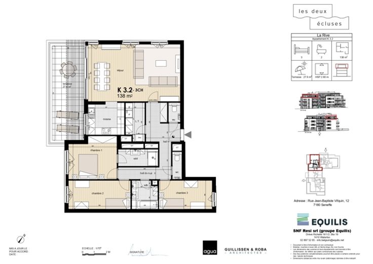 HOUSY vous propose cette NOUVELLE PHASE 2024 comprenant 25 appartements neufs, situés à Seneffe, dans un cadre unique, au bord de l’eau, logé entre l’ancien canal et le RAVeL. Cet immeuble "JK" complète les deux immeubles "EFG" et "HI" en cours de construction. Ces logements offrent à la fois une tranquillité toute champêtre et une accessibilité optimale. Proche des commerces, écoles, axes routiers et transports en commun. Immeubles de 3 étages. Chaque appartement aura sa terrasse privative, une cave (suppl. 5.000€ htva) et un parking souterrain (suppl. 20.000€ htva). De l'appartement 1 chambre au penthouse 4 chambres. Appartement à partir de 229.000 euros Htva. Renseignements : HOUSY SERVICES IMMOBILIERS : 067/70.01.70.