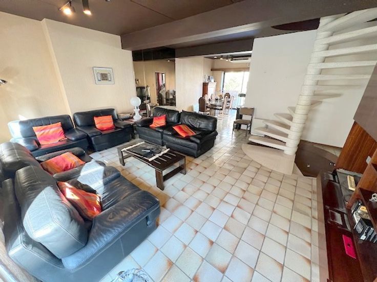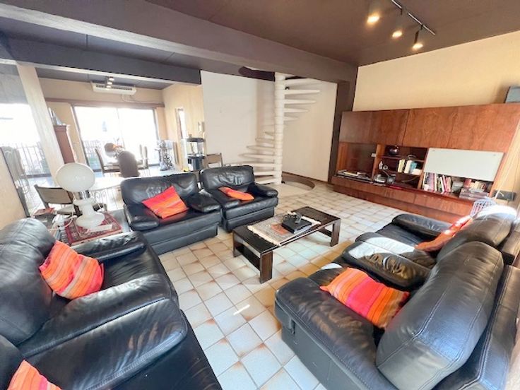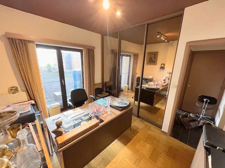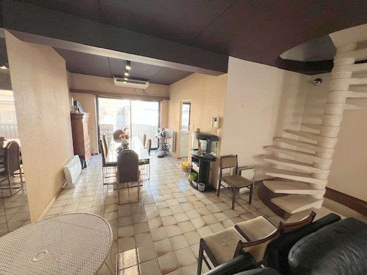 Bénéficiant d'une situation exceptionnelle à prox. du nouveau palais de justice, de la gare, du futur centre commercial, voici une maison unifamiliale 7ch de 334m² habitables (surface PEB) sur 6 niveaux avec garage, empl.de parking, cour bétonnée, balcon sur l'arrière et terrasse de 19m² exposée sud sur l'avant. Au s-sol : hall, bureau de 17m² avec lumière naturelle, pièce de 4m² avec évier (poss sdd afin de faire un studio) et chaufferie de 18m² . Le vaste hall du rez avec pierres bleues et WC séparé donne accès à un bureau de 12m² avec parquet en chêne, une buand. et le garage de 20m² avec porte électrique. Au 1er : beau living carrelé de 43m² , cuis. équipée de 9m² (meubles, taque, four, hotte, frigo-congél. et évier) + terrasse en teck de 7m². Le hall du 2ème étage donne accès à 3 ch (12-10-10m²), une sdd et un WC séparé. Celui du 3ème étage à 4 ch de 10m² chacune et une sdd avec WC. Vaste grenier aménageable de 34m² avec terrasse de 19m² exposée sud. Chaque étage est desservi par un magnifique escalier en colimaçon en granito blanc. CC gaz avec nouvelle chaudière à condensation VAILLANT. Châssis DV alu anciens. Toit en ardoises nat. Excellent PEB de classe C. La structure en béton du bâtiment rend les espaces modulables (pas de murs porteurs) et permet la transformation en espace de bureaux d'avocats (ou autre).Poss. d'aménager la cour intérieure en parking (4-5 voitures) en ouvrant le garage et le bureau du rez. Doc. et prix informatifs et non contractuels.