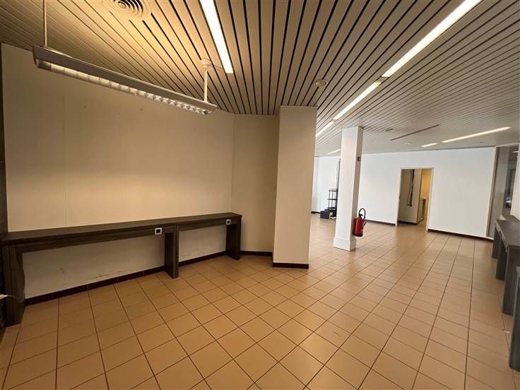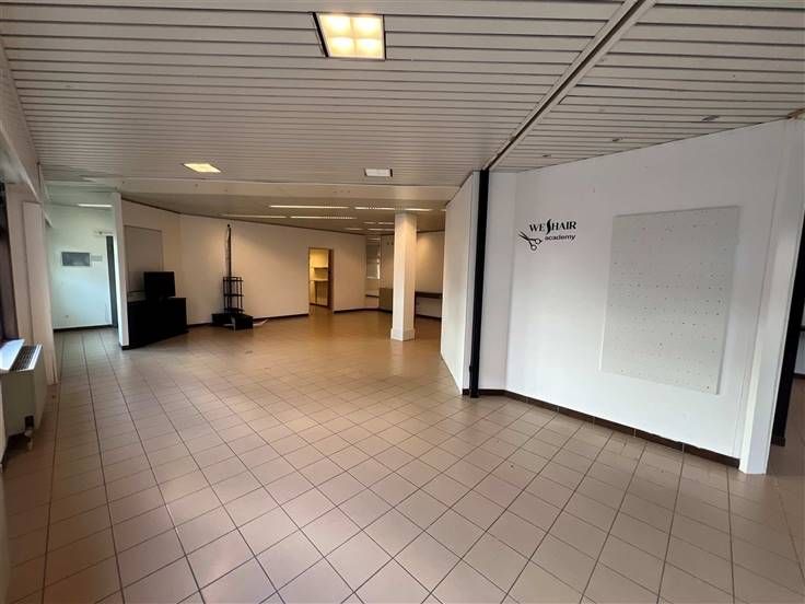 U betreedt het pand via een inkomhal waar een ontvangstruimte of eerste winkelgedeelte gevormd kan worden. Verder beschikt het pand over een grote, open ruimte ideaal voor bureaus of winkel. Tenslotte beschikt het pand nog over een afgesloten bureauruimte, grote berging voor stockage en keuken met sanitaire voorzieningen. Het handelspand is ideaal voor bureaus, winkel, vrij beroep,...