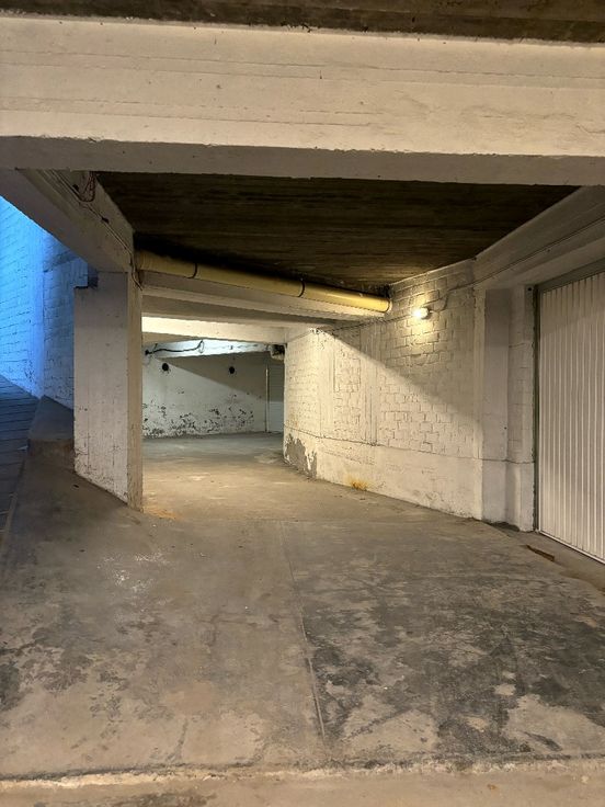 Ondergrondse garagebox te huur in de Blankenbergestraat vlakbij het Sint-Pietersstation. Deze parkeergarage bevindt zich onder een appartementsgebouw.