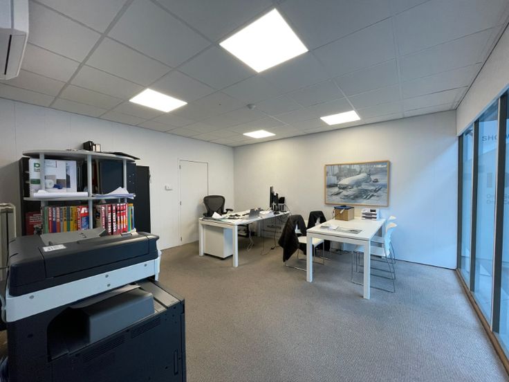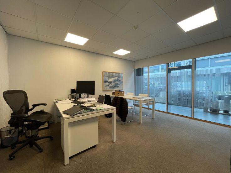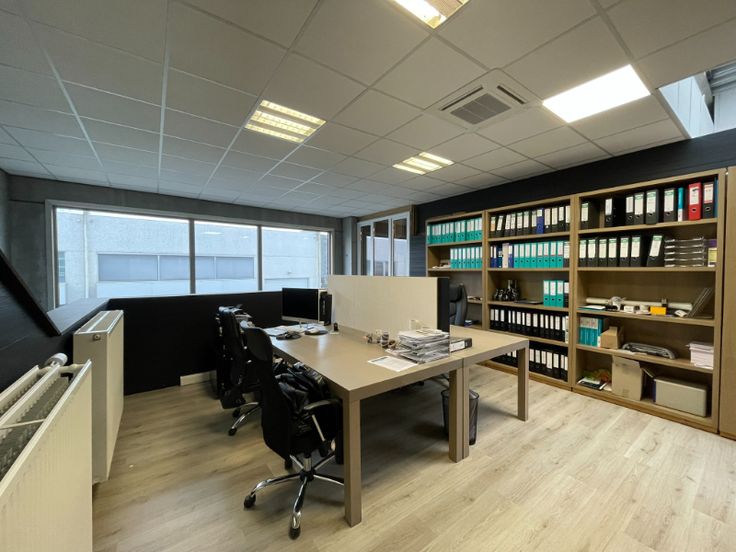 Kantoorruimte: 130m² verspreid over de eerste verdieping, bestaande uit een ruime inkomhal, 4 lichtrijke kantoorruimtes, laminaatvloer, tegelplafond met LED-verlichting, en ingebouwde kasten. Verwarming via cv op gas, airconditioning aanwezig.
