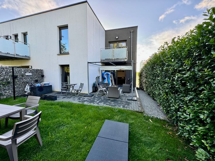 LA CALAMINE Käskorb, 59A : Vous cherchez un bien de placement qui vous conviendrait aussi pour y passer votre retraite au calme ? Venez voir ce bel et récent appartement moderne situé au 1er étage d’une agréable résidence soignée. Hall, espace rangement/ technique, salle de bains complète et pratique, 2 chambres à coucher, cuisine équipée, salle à manger, salon qui donne sur la balcon avant où vous profiterez de la vue dégagée. La terrasse arrière, le jardin bien ensoleillé, le triple vitrage, le chauffage central au gaz, la ventilation, la cave privative, l’emplacement de parking extérieur et le garage sont des atouts indéniables de ce bel appartement. Gestion simplifiée et frais communs très réduits !