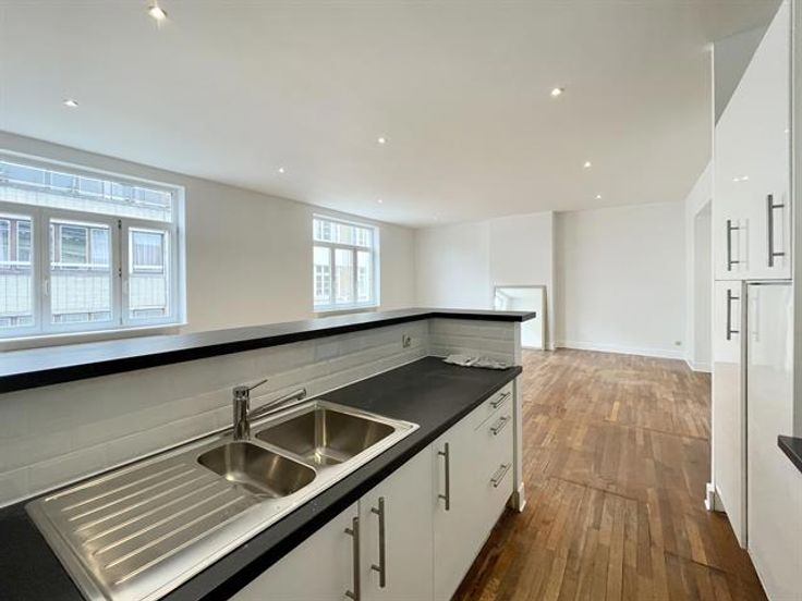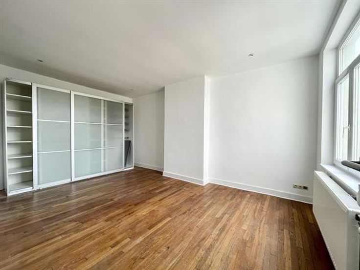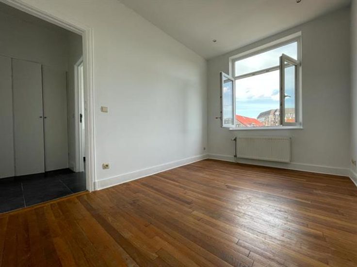 INfos en Bezoeken : Anne : 0476/896046. Tussen St Bonifatius en Leopoldwijk ( Europese Gemeenschappen ) , mooi appartement ONGEMEUBILEERD 110m² , op de 3e verdieping : woonkamer ( 50m² ) met houten vloer , een volledig uitgeruste open keuken, 2 slaapkamers ( 21m² en 11m² ) met houten vloer , een met inbouwkasten , 1 badkamer met toilet, een wasplaats niet uitgerust , apart toilet , individuele gasketel . € 125 voor parkingplaats. Dicht bij het openbaar vervoer.