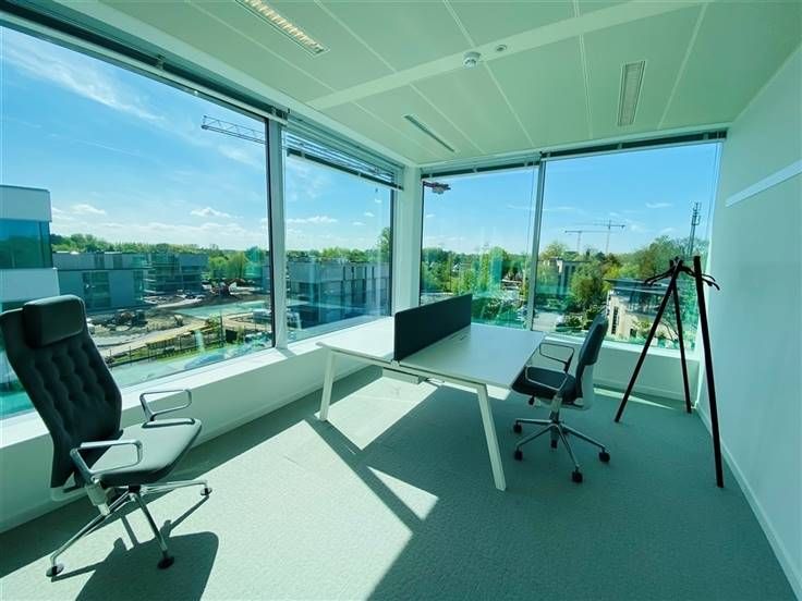 Stijlvolle gemeubelde kantoren in Business Center 3Square Village. Full-service formule. Publiciteit langs E40 mogelijk. Parking beschikbaar.
