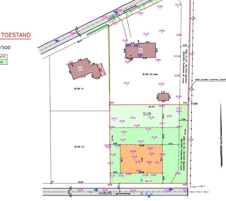 Groot 2128 m². Breedte aan de straatkant 45,13m, diep 46.5 m. Mogelijkheid tot bouwen vrijstaande woning van 25m breed en 17m diep. Informatieplicht: Gvg/Wg/Gmo/Gvkr/Vv - gelegen in een goedgekeurde verkaveling dd. 13 november 2023. Niet overstromingsgevoelig gelegen. P score: A