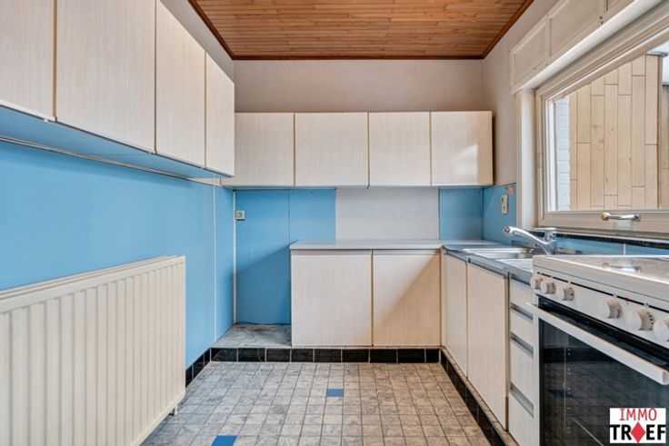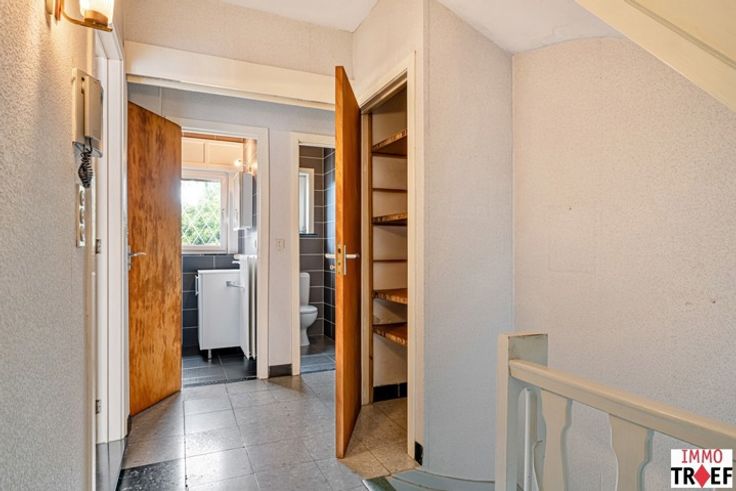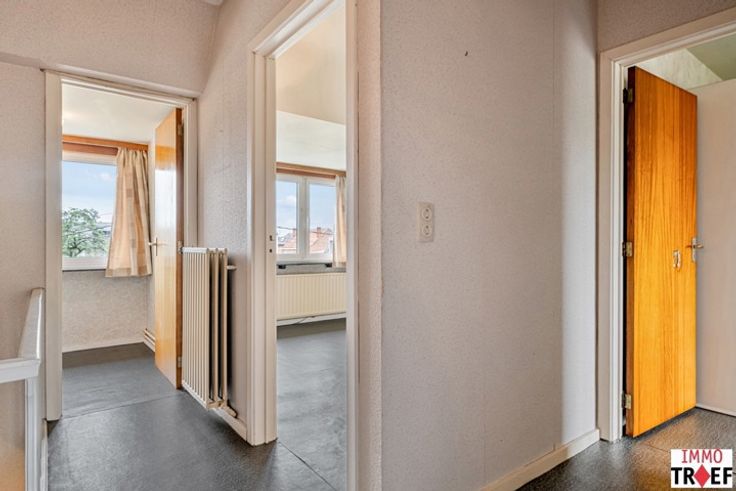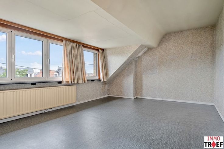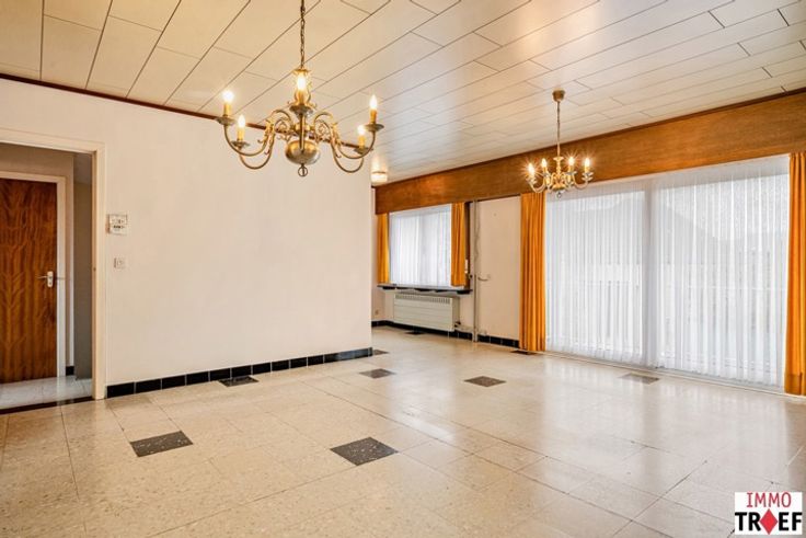 Deze te renoveren gezinswoning is gelegen in een rustige straat, op korte afstand van centrum Lebbeke, vlakbij openbaar vervoer en nabij scholen en winkels. Deze bel-etage heeft de volgende indeling: een inkomhal, toegang tot een ruime garage, een wasruimte/bijkeuken, een technische ruimte, een toilet, en toegang tot het terras en de zonnige tuin. Op de eerste verdieping is er een lichtrijke leefruimte, een keuken met aansluitend een veranda die ook toegang heeft tot de tuin. Verder is er een badkamer met wastafel en ligbad en een apart toilet. Op de tweede verdieping zijn er 3 ruime slaapkamers en 1 kleine slaapkamer/bureau/opbergruimte. TROEVEN: gelegen in een zeer rustige straat, praktische indeling, garage + veel parkeerplaats voor de woning, verschillende praktische opbergruimtes aanwezig, woning met veel mogelijkheden. Info en/of bezoek? Contacteer Charlotte van IMMO TROEF: 052 52 52 00 of info@immotroef.be