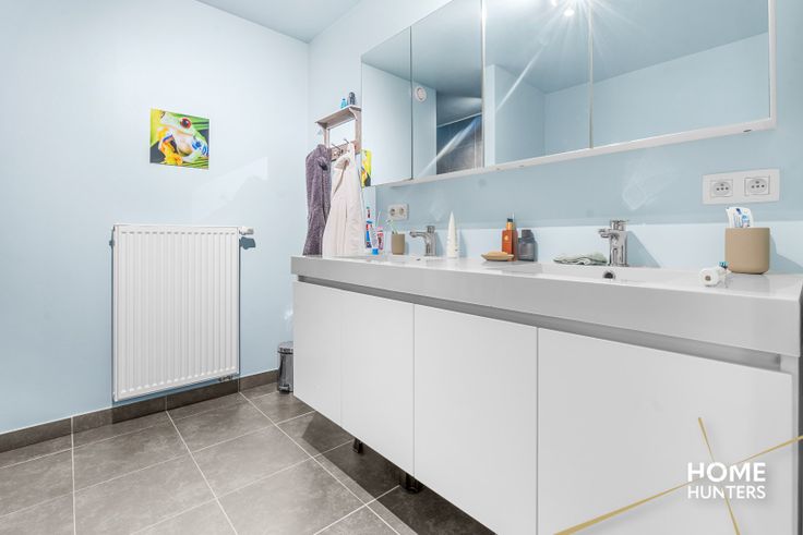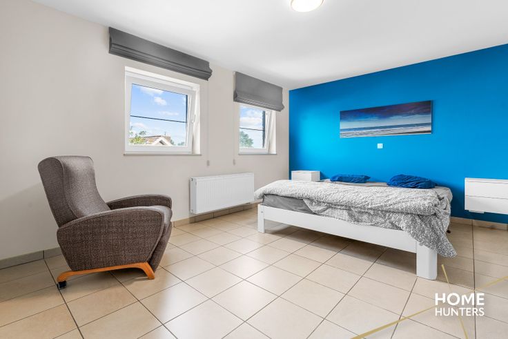 De eerste verdieping is ingericht in een ruime inkomhal, 3 volwaardige slaapkamers en een volledig ingerichte badkamer (dubbel lavabomeubel, ligbad en inloopdouche), alsook een apart toilet.