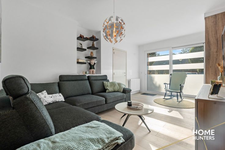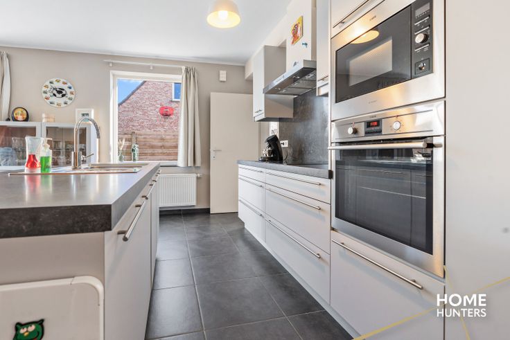 Men betreedt de woning via de inkomhal met apart gastentoilet en inbouwkasten, aansluitend bevindt zich de ruime leefkeuken (ingericht met volledig uitgeruste Dovy keuken) met ruim overzicht op de perfect aangelegde tuin. Aansluitend is er een handige berging achter de keuken, alsook een zeer aangename zithoek. De gelijkvloerse verdieping ronden we af met een praktische wasplaats/berging met inbouwkasten.