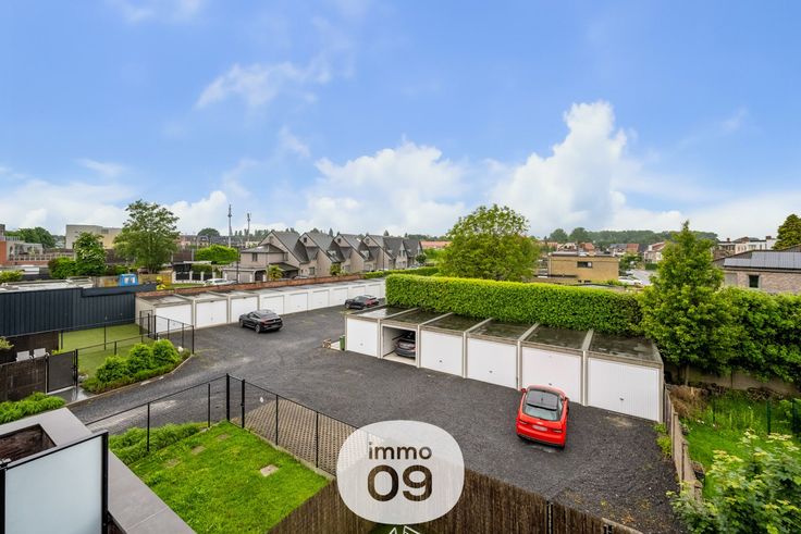Er kan een garagebox bijgekocht worden, pal achter het gebouw voor 32.000 €.