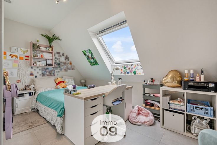In de inkomhal bevindt zich een gastentoilet. Loopt u verder, dan komt u uit in een grote leefruimte met halfopen keuken (+ afgesloten keukenberging), een bureaugedeelte en de 2 mooie terrassen. Vanuit de leefruimte kan u de trap nemen naar het slaapgedeelte waar u eerst in de nachthal komt, welke toegang verleent tot een 2de toilet, een technische berging, een mooie badkamer (dubbele lavabo en een inloopdouche) en 2 mooie, grote, lichtrijke kamers.