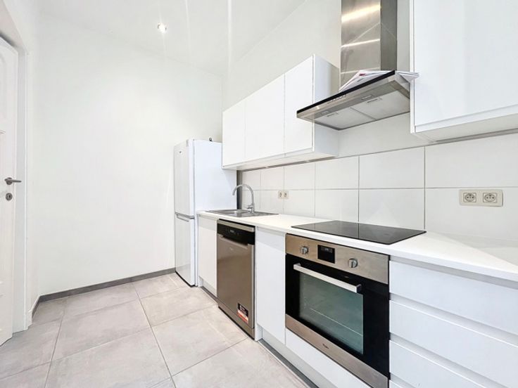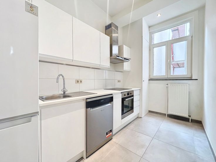 DICHT BIJ DANSAERT EN SAINTE CATHERINE PLAATS - PRACHTIG APPARTEMENT MET 2 SLAAPKAMERS - Het is als volgt samengesteld: een inkomhal met een wasruimte en een toilet, een badkamer, twee slaapkamers, een volledig uitgeruste keuken en een woonkamer/eetkamer met klein balkon . Individuele gasboiler Privékelder beschikbaar Vaste lasten: € 146,- voor onderhoud ketel, brandverzekering met verhaalsafstand, beheer en onderhoud van de gemeenschappelijke ruimtes.
