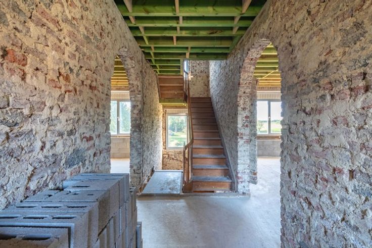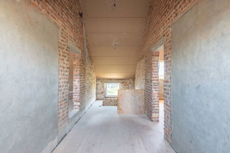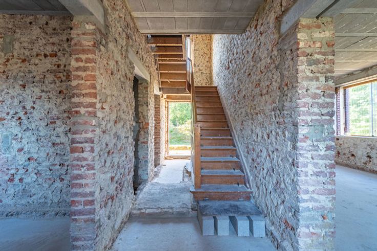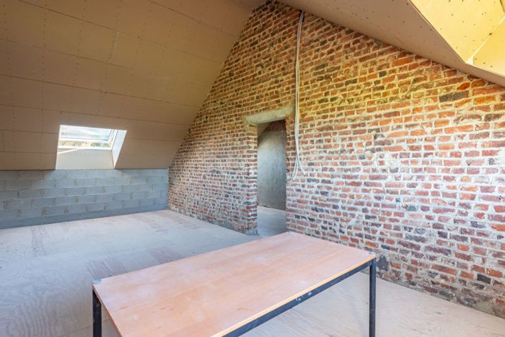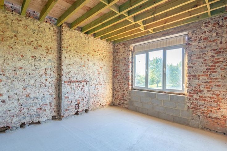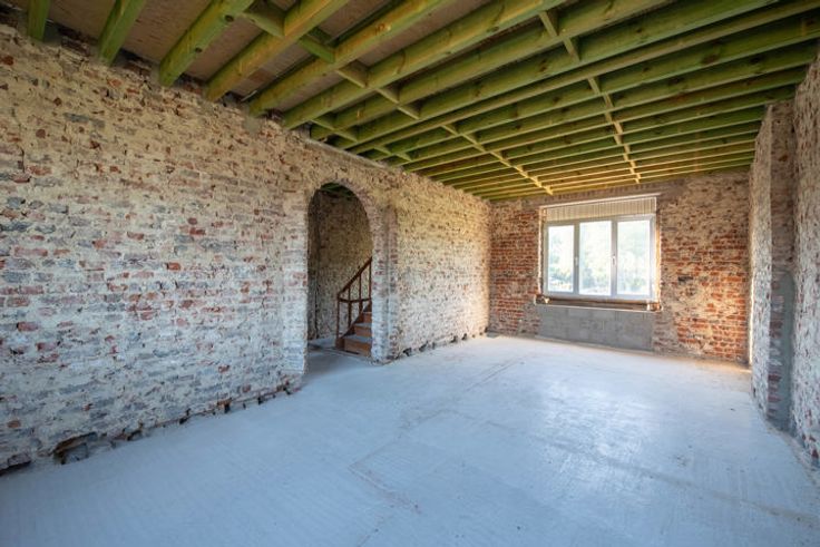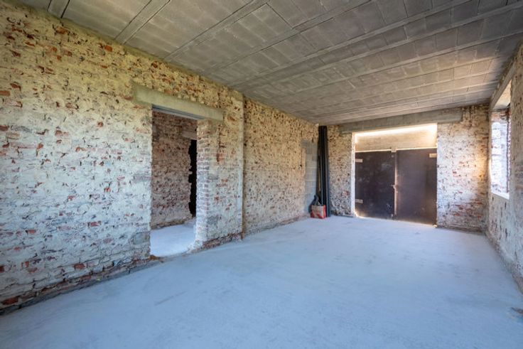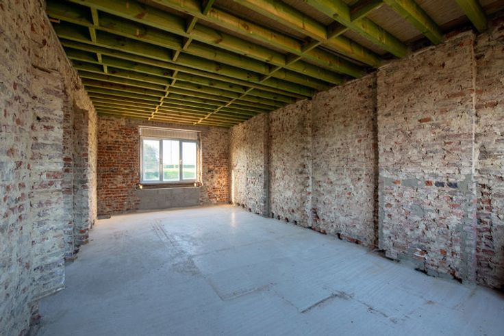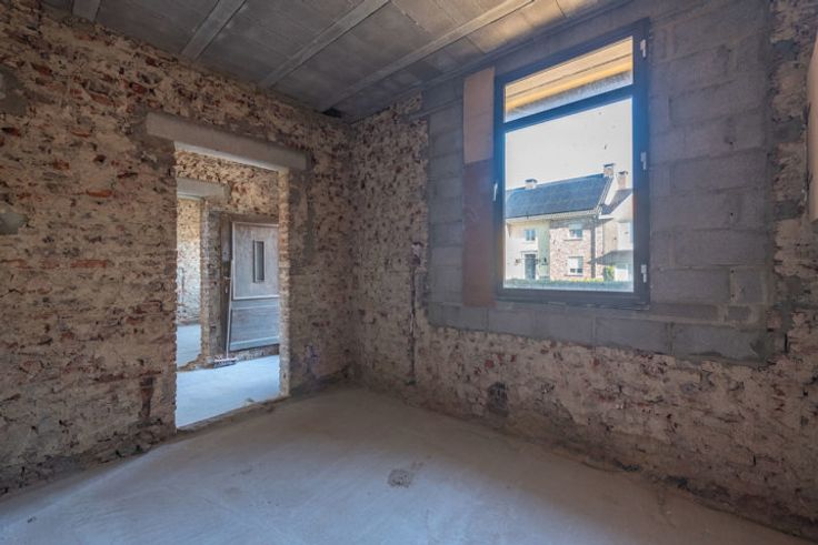 Verder af te werken, vrijstaande woning op een royaal perceel van 23a00ca te Membruggen. Op deze aangename locatie geniet je van rust en natuur in een leuke dorpskern, zonder in te boeten aan bereikbaarheid. Zo bereik je op 5 min. autostrade E313. Naar het gezellige centrum van Tongeren en Bilzen rij je slechts 10 min. In 2023 werd er een vergunning afgeleverd om deze woning om te toveren tot een villa in pastorijstijl met moglkhd tot het bouwen van een werkhuis. De woning werd gestript en deels heropgebouwd met aandacht voor energieprestatie. Daarnaast werd het dak vervangen en geïsoleerd. Extra troef is dat er voldoende bakstenen en isolatie aanwezig zijn om de woning af te werken. De volgende indeling is voorzien op de vergunde plannen:GLV:Ruime inkomhal.Riante living met bureauruimte (tot. opp. 30,8m2).Twee bergruimtes (11,84m2 en 9,33m2).Gastentoilet.Mogelijkheid tot bijbouwen van een keuken (38,85m2), speelkamer (11,75m2) en een garage (32,18m2). De funderingsplaat is aanwezig.+1:Nachthal.Twee slpkrs van 14,56m2 en 14,62m2.Badkamer van 12,68m2.Dressing van 9,09m2.+2: In te richten masterbedroom (28,08m2) waar je elke ochtend geniet van het verzicht over de groene omgeving. 2 zolderruimtes.-1:2 Kelderbergings (23,5m2).PERCEEL: Deze vrijstaande woning is landelijk gelegen op een percl van 91,5m diep en geniet een ZW oriëntatie. Voor ondernemers of doe-het-zelvers is het mogelijk een werkplaats te bouwen met een opp. van 100m2, mits voldaan aan de voorwaarden.