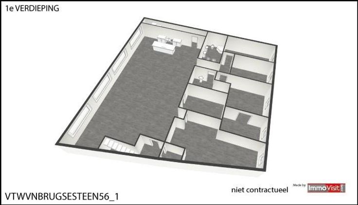 Dit pand wordt op internet verkocht van 18/11/2024 tot 26/11/2024. Indeling: twee trappen links en rechts om het appartement te bereiken, living met eetkamer en open keuken, twee slaapkamers, één slaapkamer met dressing, badkamer met wc, bureau, berging, wc en hobbyruimte. P- & G-score: A. WORG: nee. WgLk, Zwb, Gmo, Vg, Gvv, Gvkr. G score: A P score: A