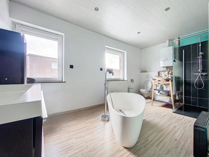 Située à deux pas du centre du village de Luingne, et à proximité des principaux axes routiers, cette maison mitoyenne de trois chambres offre un cadre de vie idéal pour une famille à la recherche de confort et de commodités à portée de main. Dès l’entrée, vous êtes accueilli par un hall qui mène à un WC indépendant. Le rez-de-chaussée se compose également d’un spacieux salon, idéal pour se détendre, et d'une grande cuisine de 33 m², entièrement équipée. Celle-ci dispose d'une taque vitrocéramique, d'un four traditionnel, d'un four micro-ondes, d'un lave-vaisselle, d'une hotte et d'un évier double, le tout offrant un espace fonctionnel et moderne pour préparer les repas. Au premier étage, la maison comprend une salle de bains équipée d'un lavabo, d'une baignoire et d'une douche. Ce même étage accueille également la première chambre de 13 m², lumineuse et confortable. Le deuxième étage abrite deux autres chambres de 12 m² chacune, parfaites pour les enfants, une chambre d'amis ou un bureau. Le sous-sol de la maison comprend une cave, offrant un espace de rangement supplémentaire. L’extérieur se compose d'une terrasse et d'un jardin, où vous pourrez profiter des journées ensoleillées en toute tranquillité. Côté confort, la maison bénéficie d’un chauffage central au gaz et de châssis en PVC avec double vitrage, garantissant une bonne isolation thermique et acoustique. L'installation électrique est aux normes, avec un compteur bihoraire, et la maison est équipée de 8 pannea