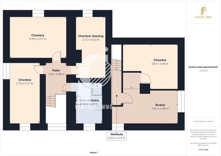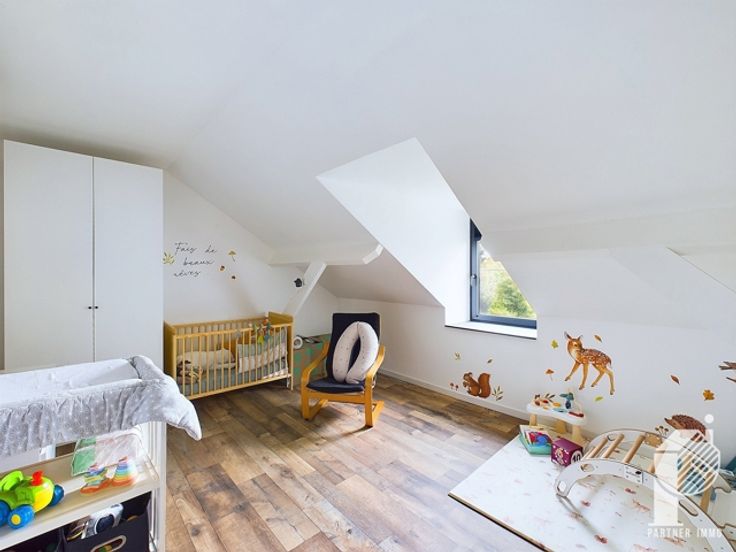 1er étage: palier, 3 chambres et salle de bains, accès via le séjour au bureau et chambre (pièce de jeu ou suite parentale).