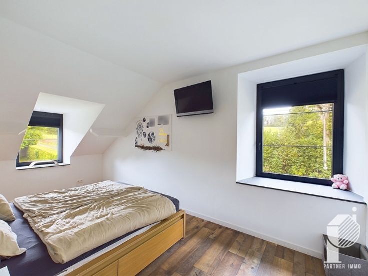 Châssis PVC DV, toit en ardoises naturelles (2020), élec. conforme, 29 panneaux photovoltaïque (rendement de +- 12.000 kWh), pompe à chaleur, système de chauffage par clim chauf/froid, moustiquaires, stores thermiques sur mesure, nouvelles installations sanitaire, 2 systèmes d'alarme avec détecteurs d'incendie et caméras, domotique (lumières, alarmes, chauffage), fosse septique.