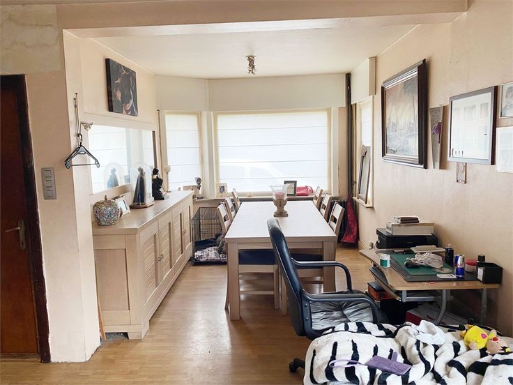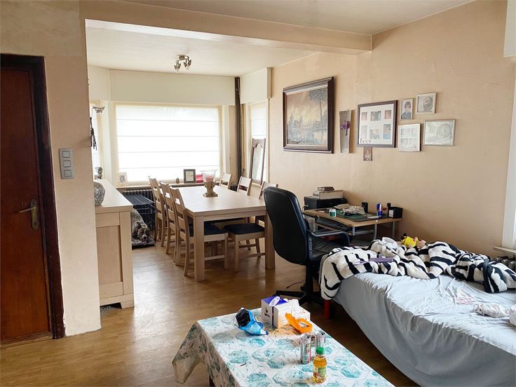 Deze woning is gelegen in een doodlopende straat vlakbij het centrum van Marke. Indeling van de woning: Aparte inkom, living met houtcassette, apart toilet, ingerichte keuken en grote aanpalende veranda + garage. Verder is er op het gelijkvloers nog een wasruimte. Op de verdieping bevinden zich 2 slaapkamers en een badkamer (douche en toilet). Kelder. Zolder. Overal dubbele beglazing (PVC), condenserende gasketel. De woning kost 300.000 euro (+ eventuele extra garage wat verder in de straat (65 m²) kan worden bijgekocht voor 30.000 euro). Bod mag gedaan worden bij een bezoek ter plaatse.