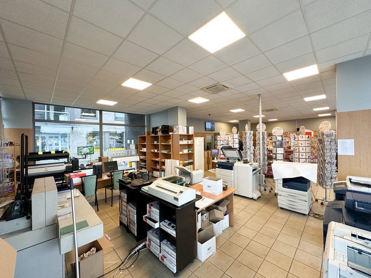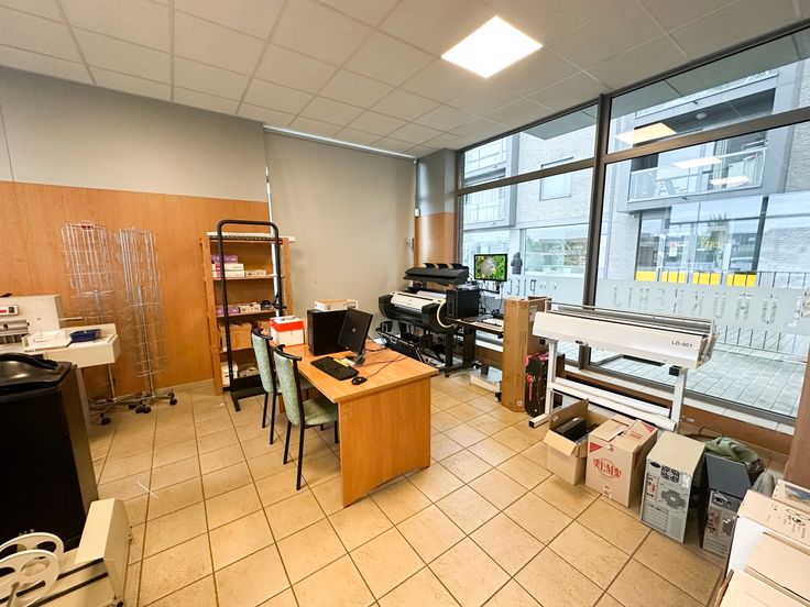 Deze handelsruimte is ingedeeld als volgt: ruim kantoor/winkelgedeelte, bureau, opslagruimte, twee toiletten en een keuken.
