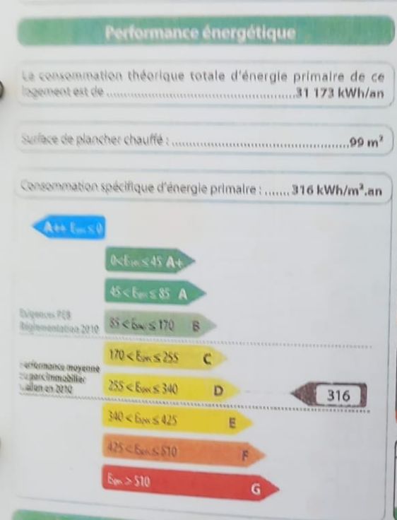 • Consommation : 316 kWh/m²/an