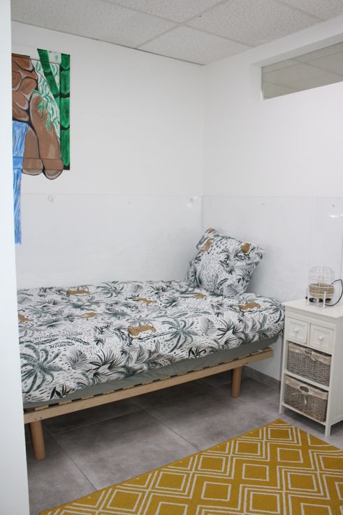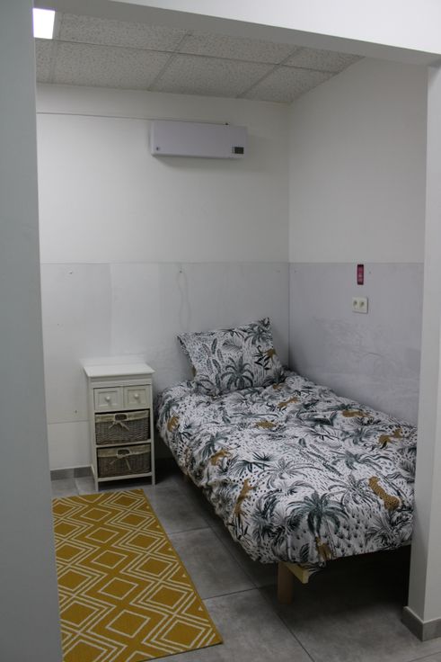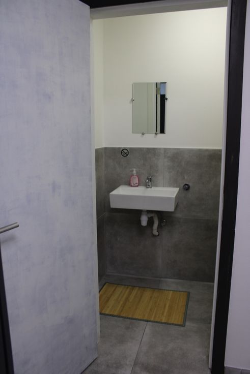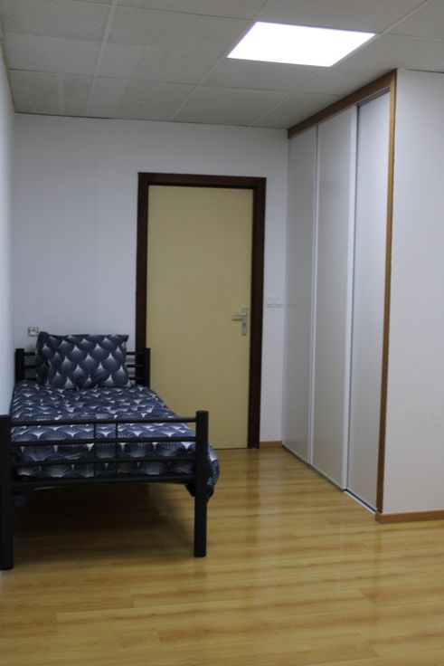 • Pièces : Une chambre, un bureau, une salle de douche avec WC, ainsi qu’un WC séparé avec évier.