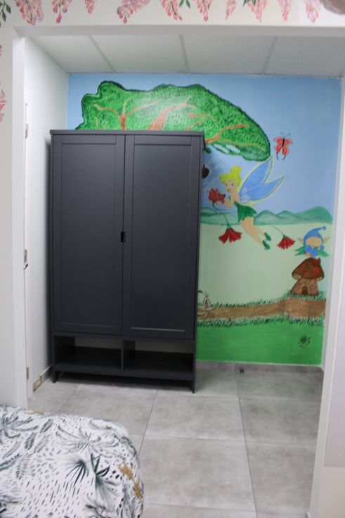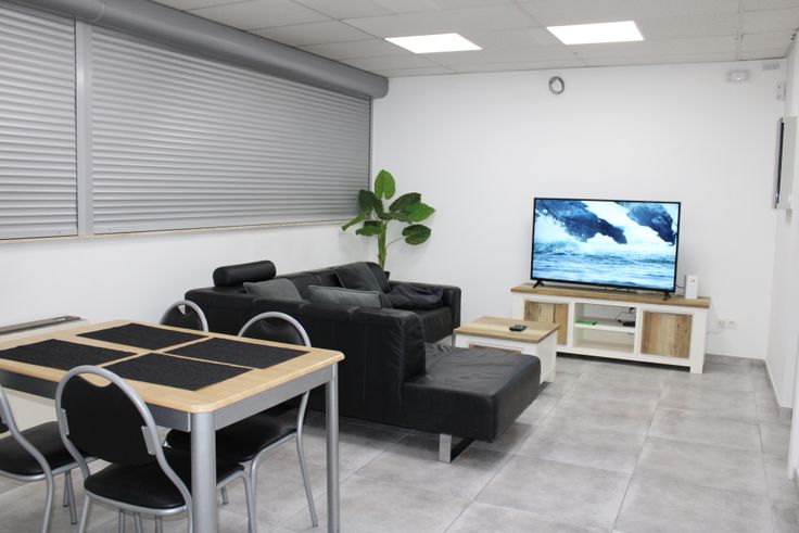 • L’appartement comprend un hall d’entrée, un spacieux living et une cuisine équipée avec hotte, four, taque vitrocéramique, et frigo.