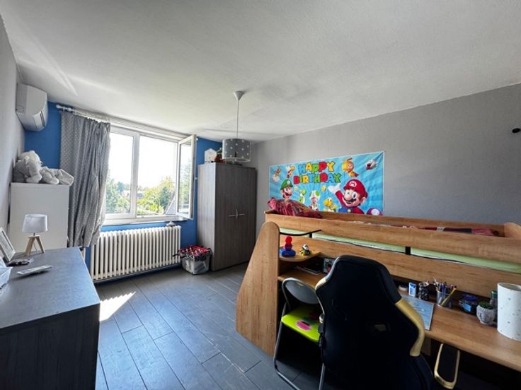 À l'étage, deux chambres de 14 m² chacune, une salle de bains, et une troisième chambre spacieuse de 33 m² avec salle de douche privative. Un espace grenier est également disponible pour répondre à vos besoins d’aménagement supplémentaires.