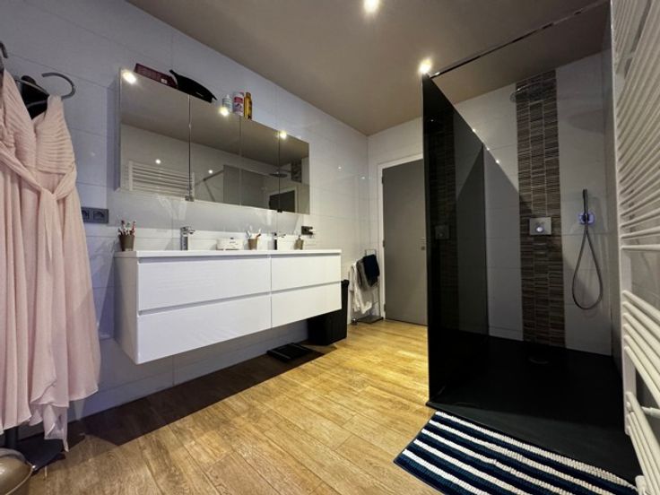 Située dans le quartier prisé du Faubourg, cette villa d’exception saura séduire les amateurs de biens de standing. Implantée sur un superbe terrain paysagé de 27 ares, elle offre une modularité rare, parfaitement adaptée à une activité de profession libérale grâce à un espace dédié et fonctionnel. Dès l’entrée, vous découvrirez un hall accueillant avec toilettes invités. Le rez-de-chaussée se distingue par un vaste living traversant de ±60 m², baigné de lumière, avec parquet, feu ouvert, et une cuisine américaine entièrement équipée, comprenant un îlot central. Un bureau et une suite parentale complètent cet étage, avec chambre, dressing, salle de douche avec douche à l’italienne et toilettes séparées, garantissant un confort optimal.