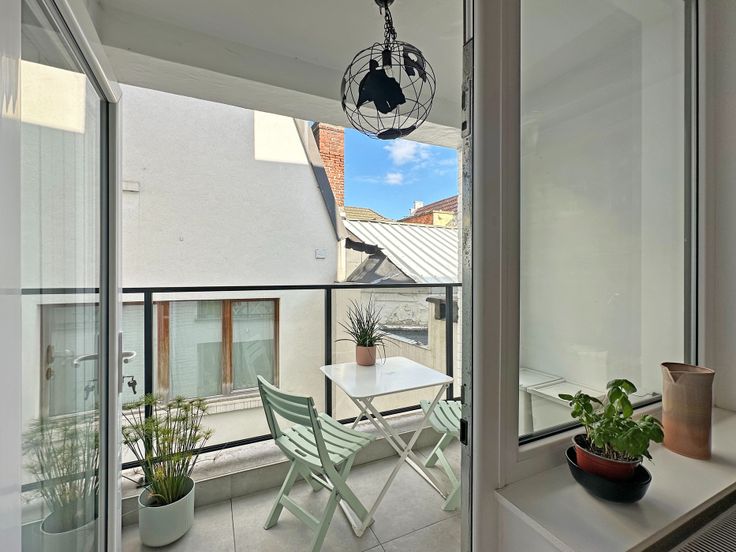 Met een zonnige oriëntatie geniet je de hele dag door van natuurlijk licht. Begin je ochtend met een kop koffie op het terras in de opkomende zon, en later op de dag stroomt het zonlicht rijkelijk binnen in de gezellige woonkamer. Een extra troef is het terras, ideaal om te ontspannen in het stadscentrum.