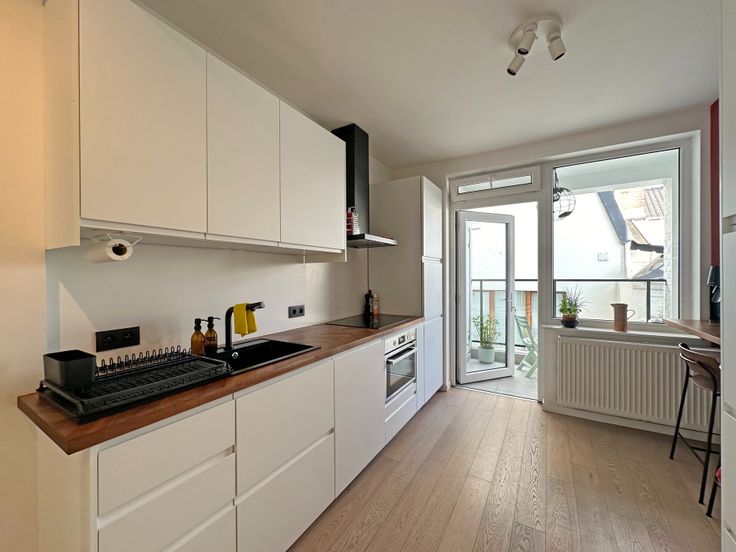 Ontdek dit stijlvolle en instapklare appartement, gelegen in de begeerde buurt nabij Sint-Anna, het neusje van de zalm in Gent. Dit tweeslaapkamer appartement combineert een moderne city-indeling met hoogwaardige afwerking en praktisch maatwerk, waaronder inbouwkasten die optimaal gebruik maken van de ruimte.