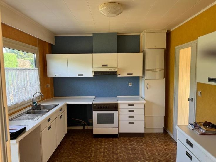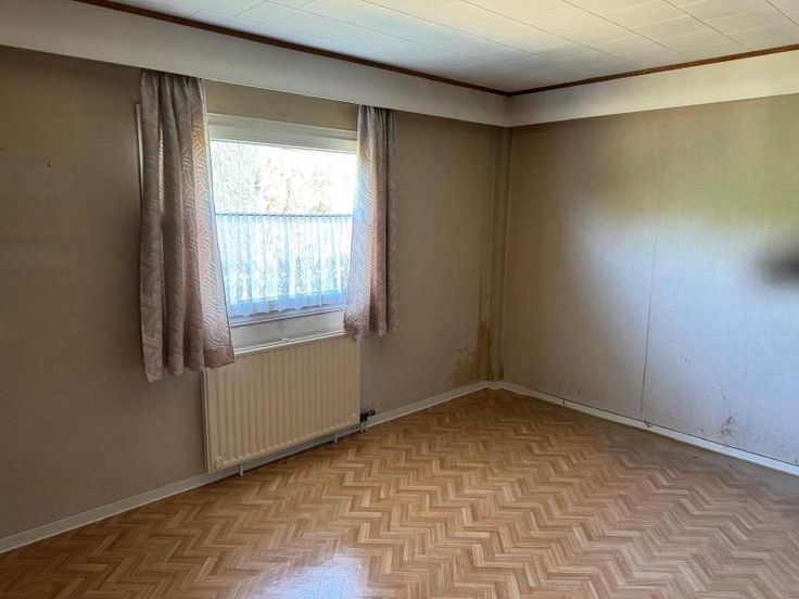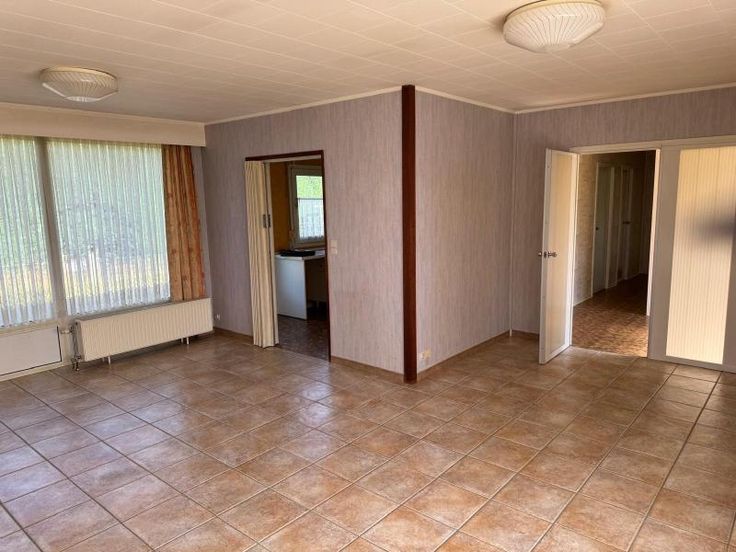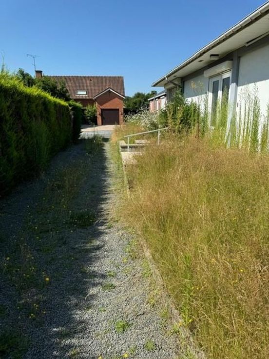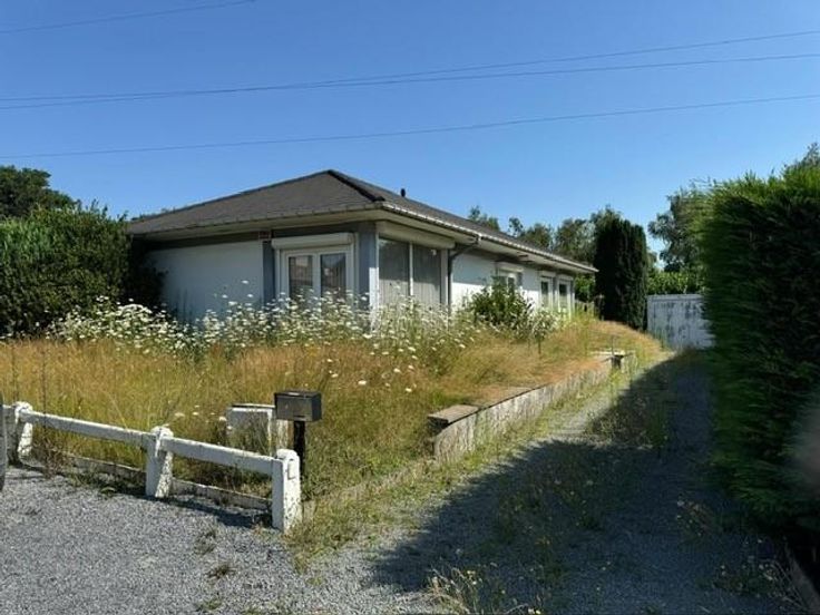maison d'habitation style bungalow 4 façades avec jardin et garage comprenant : RDC: hall, living, cuisine semi-équipée, 3 chambres, salle de bains châssis: double vitrage PVC RC: 537 € Superficie: 5a76ca Chauffage : central gaz pas de grenier pas de cave faire offre à partir de 180.000 euros