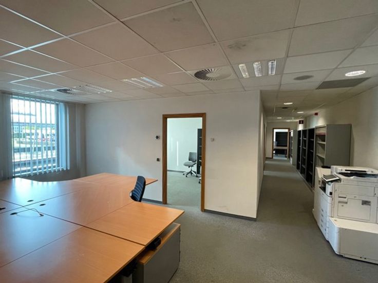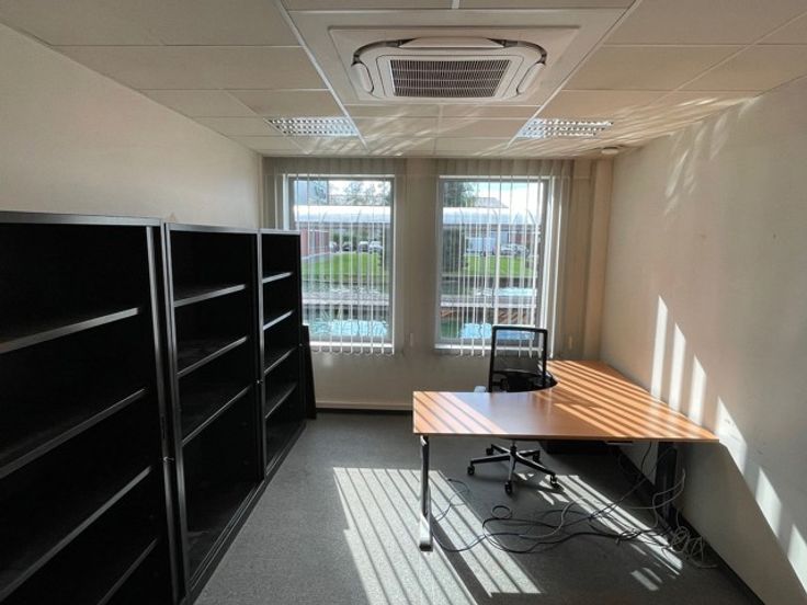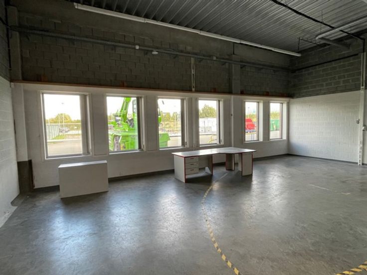 Het gebouw omvat 150m² aan kantoorruimte en 1.200m² aan opslagruimte, bestaande uit een atelier van 925m² met een vrije hoogte van 4,2m, kantoren van 140m², een buffer magazijn van 88m², en EHBO en 2 zalen van 46m². Het pand beschikt over een laad- en loszone met een poort van 4,6m breed en 3,45m hoog, evenals een mini-rolbrug met een capaciteit tot 1.500 kg.