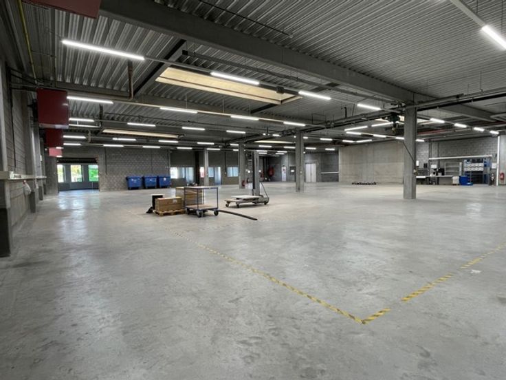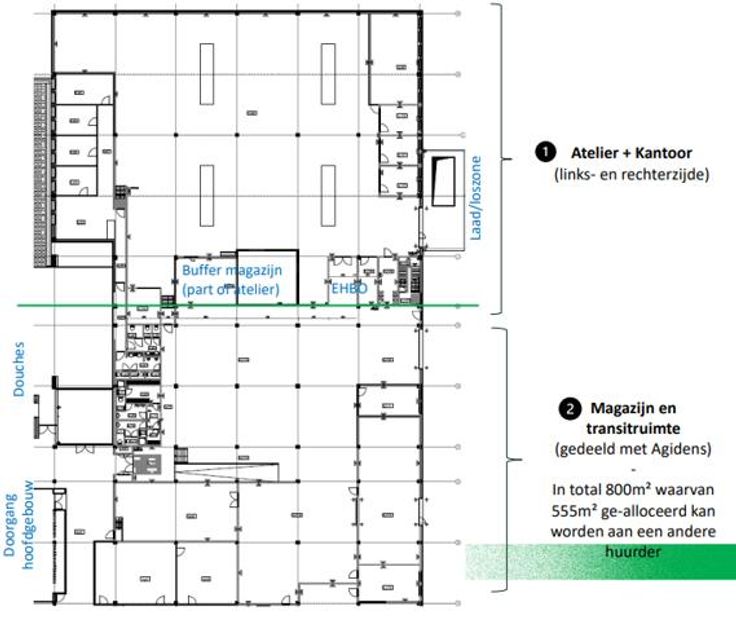 Daarnaast is er een niet-afgescheiden magazijnruimte van 555m², inclusief transitruimte, beschikbaar.
