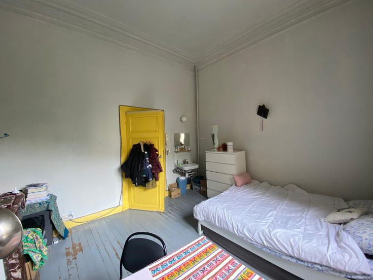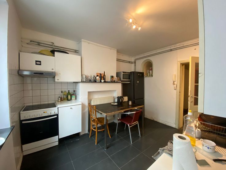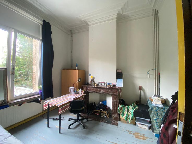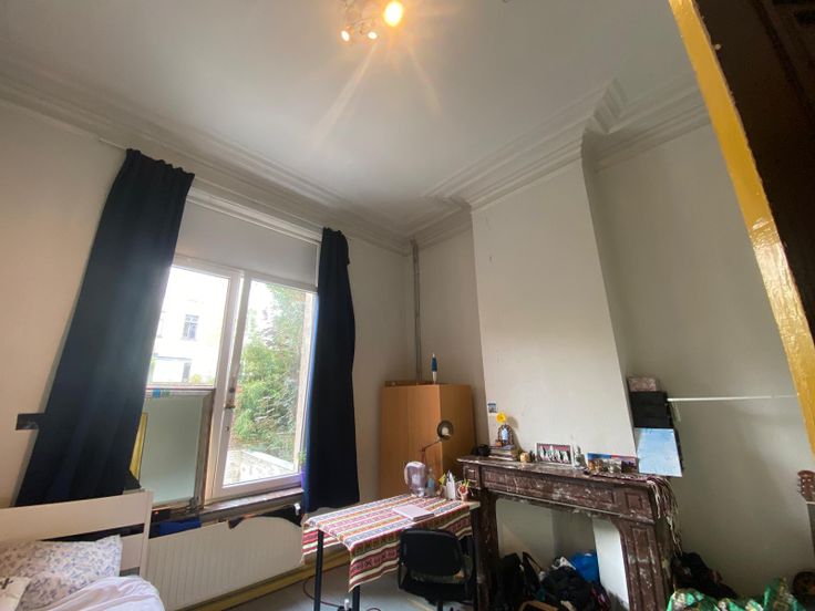 Quartier Louise/Stéphanie, une chambre d'étudiant (kot) est disponible dans une colocation de 8 personnes. La chambre est située au rez-de-chaussée, à l'arrière de l'immeuble. En outre, les colocataires se partagent une cuisine équipée commune, un séjour, une cour arrière, une buanderie avec lave-linge et séchoir, et des sanitaires (douches et wc). Charges = provisions pour chauffage, électricité, eau, internet, nettoyage des parties communes et assurance abandon de recours.