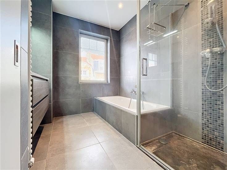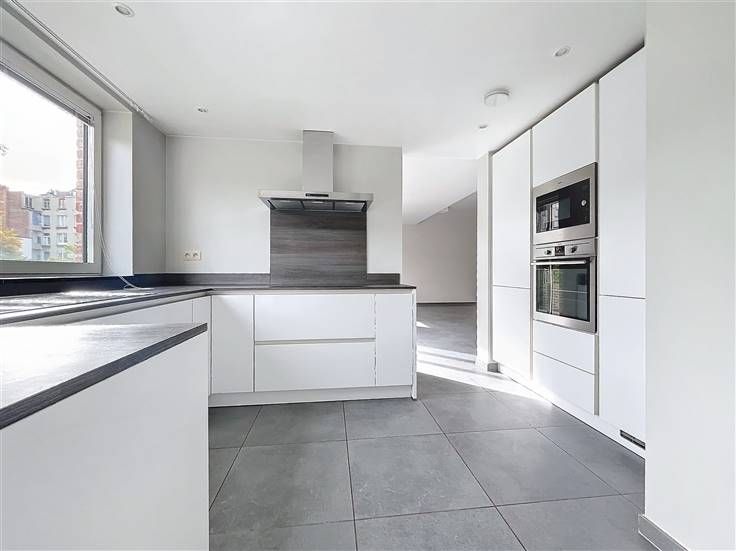 Wijk Parvis Saint-Pierre - Vlakbij het Wolvendaelpark - Luxueus appartement met 2 slaapkamers van +/- 110m². Op de 2 e / 3 e verdieping: Ruime inkomhal met gastentoilet, woon / eetkamer van +/- 35m² met aangrenzend terras, volledig ingerichte open keuken van +/- 10m² (keramische kookplaat, oven, koelkast / vriezer, afzuigkap, vaatwasser, magnetron), bijkeuken met droger en wasmachine, nachthal van +/- 8m² met bergruimte, twee slaapkamers van +/-14m² en +/- 13m², aangename badkamer van +/- 6m². Voorzieningen en comfort: Gepantserde deur, dubbele beglazing, telefoon, wasmachine en droger, kelder, fietsenberging, boiler met dubbel debiet, waterontharder. EPB: B+. Kosten: € 125/maand (elektriciteit en onderhoud van gemeenschappelijke ruimtes, lift, onderhoud van waterontharder). Individuele meters voor water, gas en elektriciteit. Beschikbaar per direct.