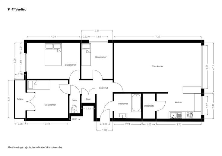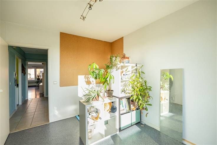 Het appartement bevindt zich op de vierde verdieping van een kleinschalig gebouw, waar je binnenkomt in de ruime, betegelde inkomhal. Hier heb je een ruime berging, ingemaakte vestiairekast en een apart gastentoilet. Meteen rechts stap je de grote leefruimte binnen, die een verzorgde laminaatparket heeft, met kamerbrede ramen die veel licht binnentrekken, uitkijken op de gemeenschappelijke buurttuin én zelfs op de koepel van Antwerpen Centraal in de verte. Ook de open, volledig geïnstalleerde keuken baadt in het licht, en heeft – naast een onderhoudsvriendelijke tegelvloer - een gezellige ontbijttoog. Je hebt hier een gasvuur, dampkap, anderhalve spoelbak, vaatwasser, plaats voor een koelkast én nog een aparte bergruimte met daarin je condensatieketel en plaats voor je wasmachine. Weer in de hal, heb je een badkamer op parkettegel, met een bad met douchescherm en een lavabomeubel, inclusief een hangkast ernaast. De eerste, kleinste slaapkamer bevindt zich in het midden van het appartement, is zuidgericht en kijkt uit op de boomrijke parking. De twee andere slaapkamers vind je terug aan de oostelijke achterzijde, waardoor je hier geniet van het zachte ochtendlicht. De master bedroom heeft bovendien airco, en de kamer ernaast geeft uit op een klein terrasje, met zicht op de groene binnentuin van de aanpalende kerk. Zurenborg en de Dageraadplaats is op nog geen 5 minuutjes wandelen. Meer info: https://www.immovasta.be/panden/gegevens/13420/
